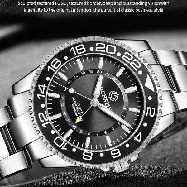 Ochstin 5019B Multifunctional Waterproof Stainless Steel Strap Quartz Watch(Gold+Black+Red)