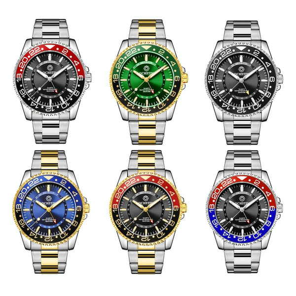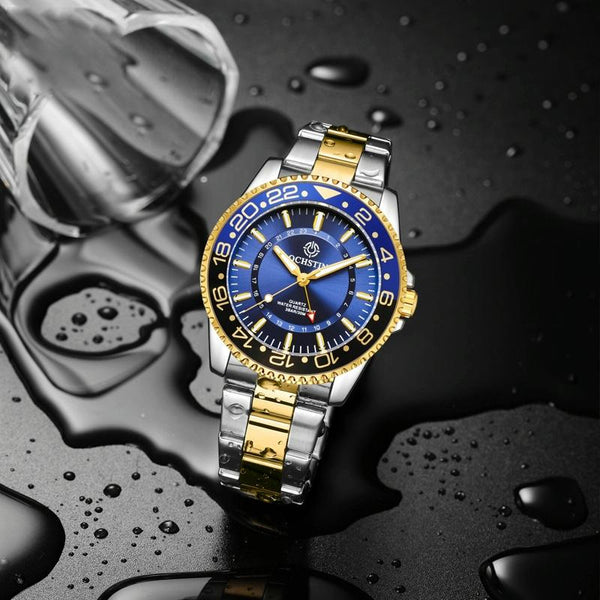 Ochstin 5019B Multifunctional Waterproof Stainless Steel Strap Quartz Watch(Gold+Green)