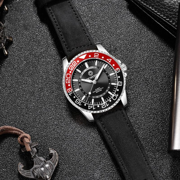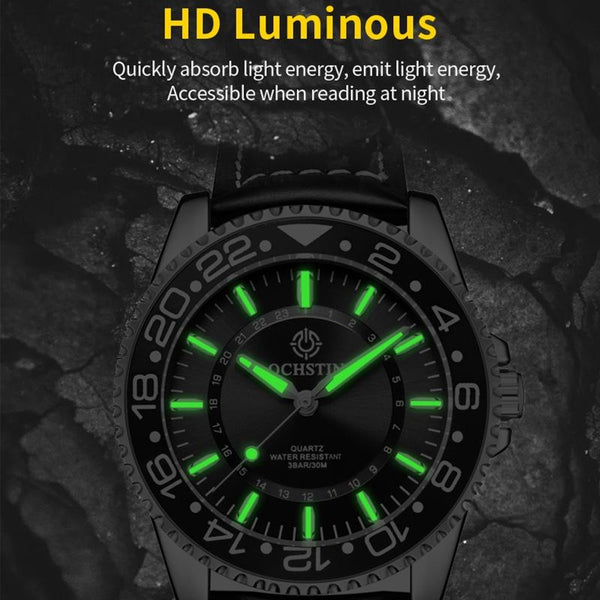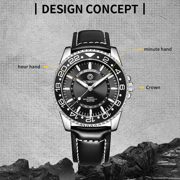 Ochstin 5019G Fashion Business Waterproof Leather Strap Quartz Watch(Green+Green)