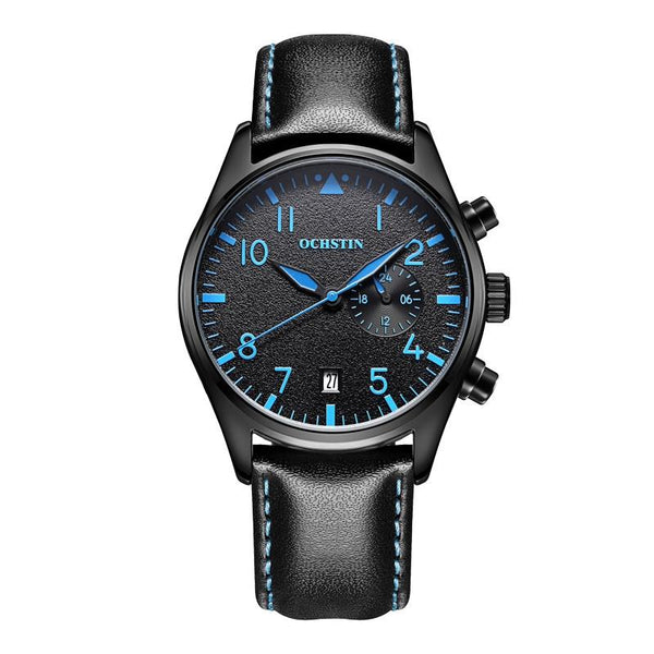 Ochstin 5043C Multifunctional Business Waterproof Leather Strap Quartz Watch(Black+Black+Blue)