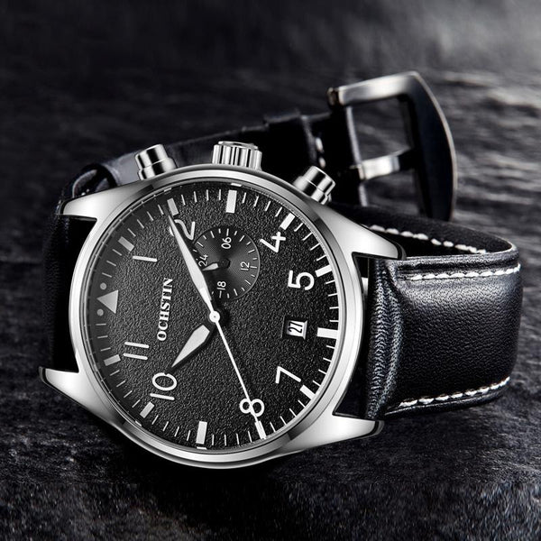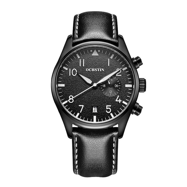 Ochstin 5043C Multifunctional Business Waterproof Leather Strap Quartz Watch(Black+Black+White)