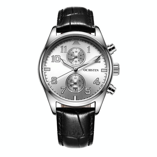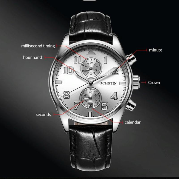 Ochstin 5043G Multifunctional Waterproof Leather Strap Quartz Watch(Silver+White+Black)
