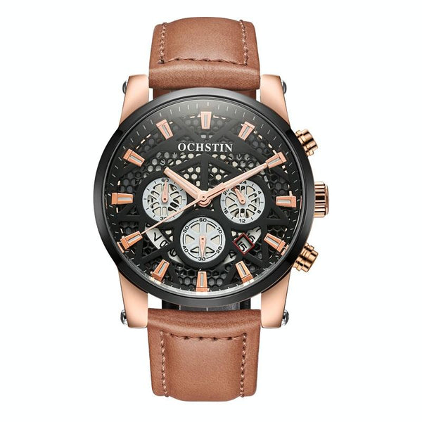Ochstin 5052B Multifunctional Business Waterproof Leather Strap Quartz Watch(Rose Gold+Brown)
