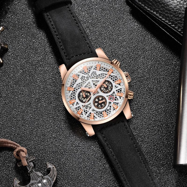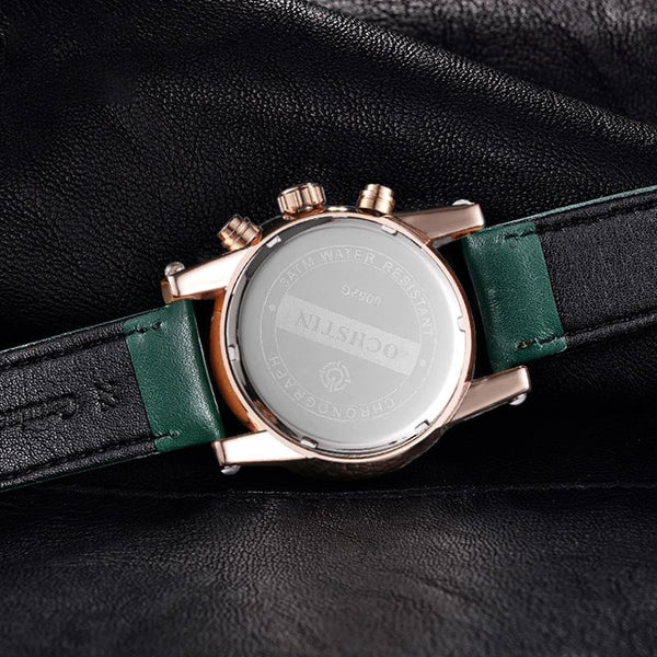 Ochstin 5052B Multifunctional Business Waterproof Leather Strap Quartz Watch(Rose Gold+Coffee)