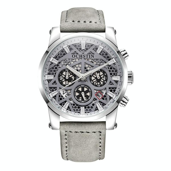 Ochstin 5052B Multifunctional Business Waterproof Leather Strap Quartz Watch(Silver+Grey)