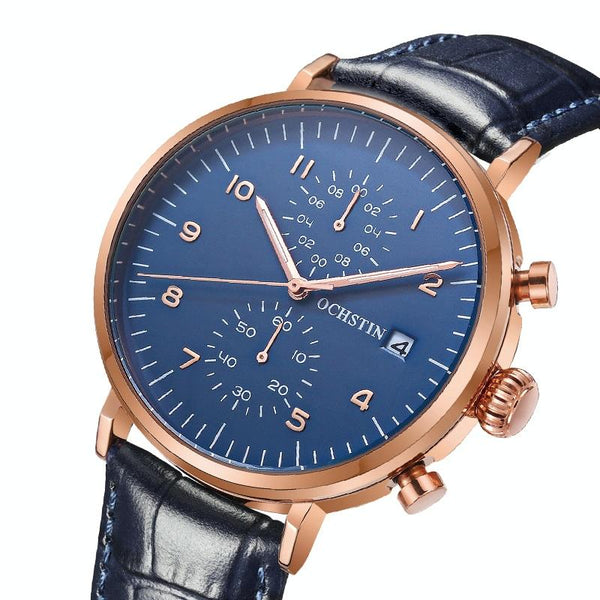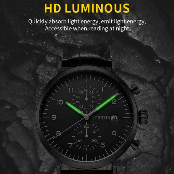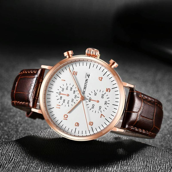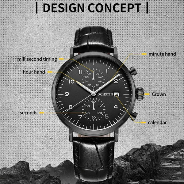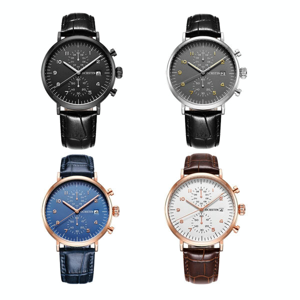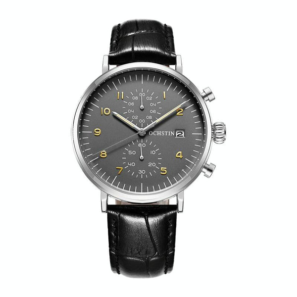 Ochstin 5076D Multifunctional Business Leather Waterproof Luminous Quartz Watch(Silver+Black)