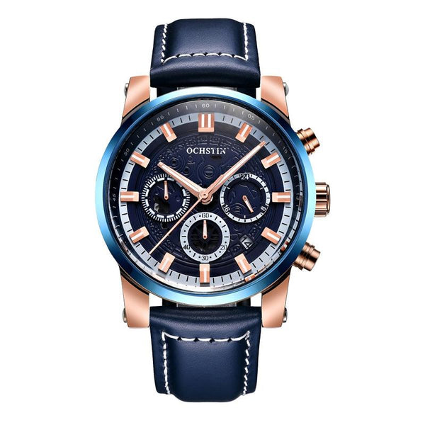 Ochstin 5111B Multifunctional Business Waterproof Luminous Leather Strap Quartz Watch(Silver+Black)