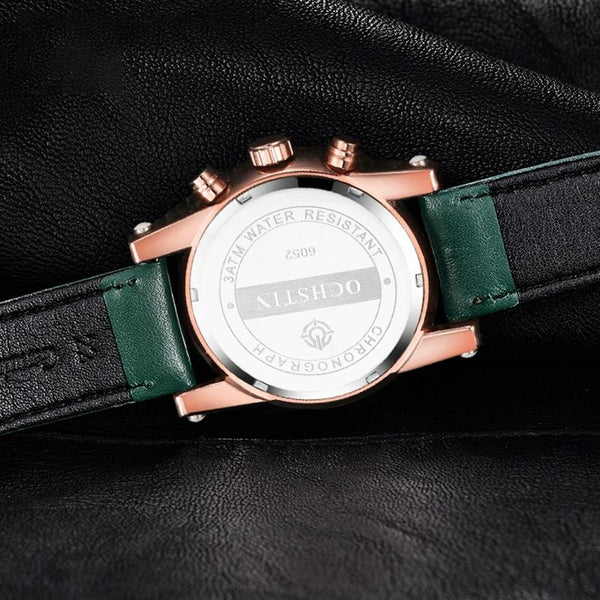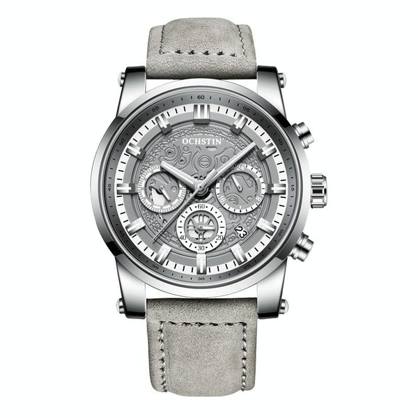 Ochstin 5111B Multifunctional Business Waterproof Luminous Leather Strap Quartz Watch(Silver+Grey)