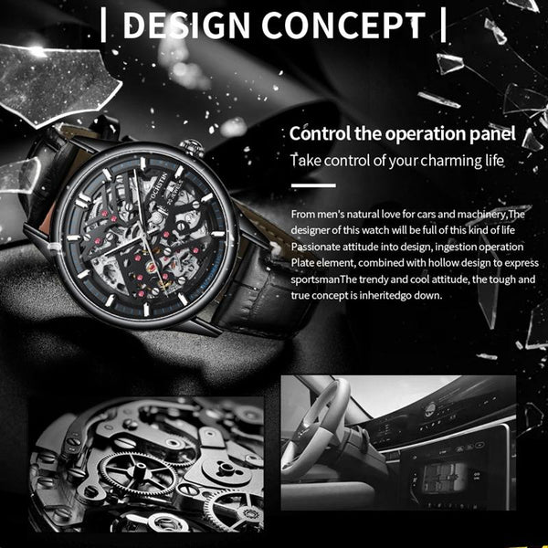 OCHSTIN 6020C Masterpiece Hollow Mechanical Men Watch(Gold-Black)