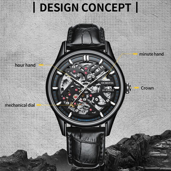 OCHSTIN 6020C Masterpiece Hollow Mechanical Men Watch(Silver-Black)