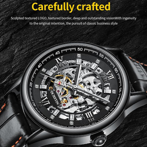 OCHSTIN 6020D Masterpiece Hollow Mechanical Men Watch(Gold-Blue)