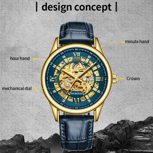 OCHSTIN 6020D Masterpiece Hollow Mechanical Men Watch(Silver-Blue)