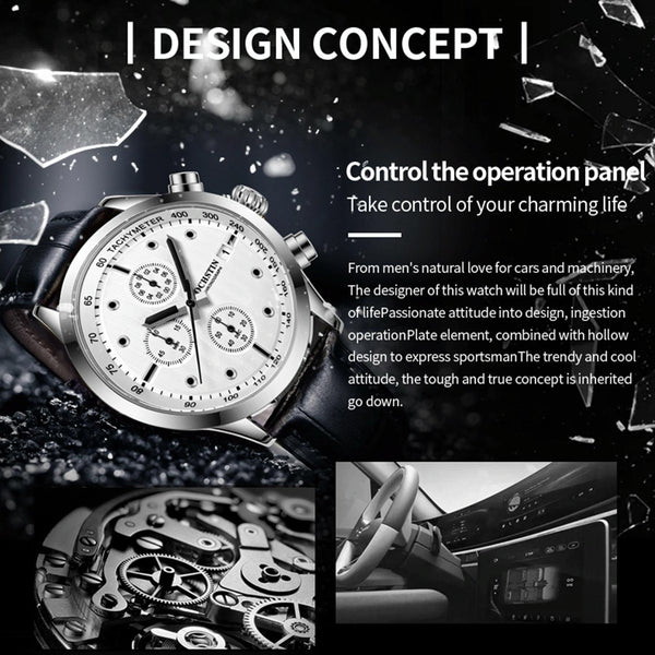 Ochstin 6042B Multifunctional Business Leather Waterproof Luminous Quartz Men Watch(Rose Gold+Black)