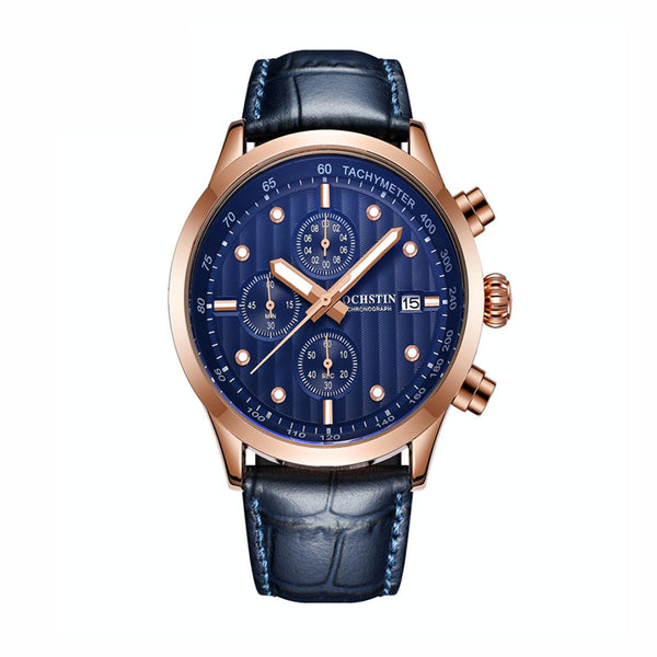 Ochstin 6042B Multifunctional Business Leather Waterproof Luminous Quartz Men Watch(Rose Gold+Blue)