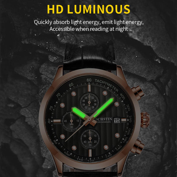 Ochstin 6042B Multifunctional Business Leather Waterproof Luminous Quartz Men Watch(Silver+Black)