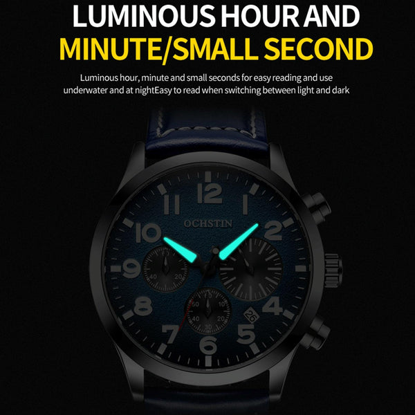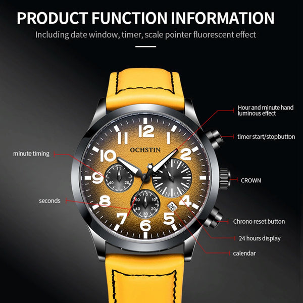 Ochstin 6042C Fashion Leather Waterproof Luminous Quartz Men Watch(Gradient Black Orange)