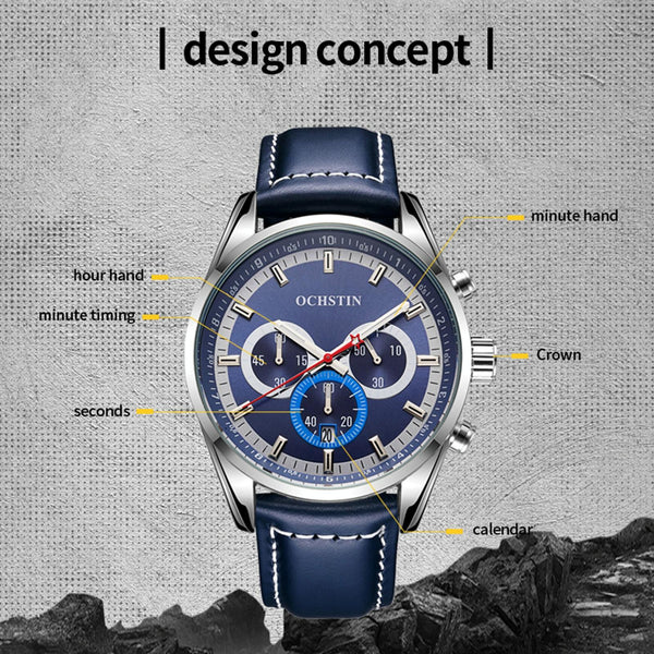 Ochstin 6046A Business Style Quartz Men Leather Watch(Rose Gold+Coffee)
