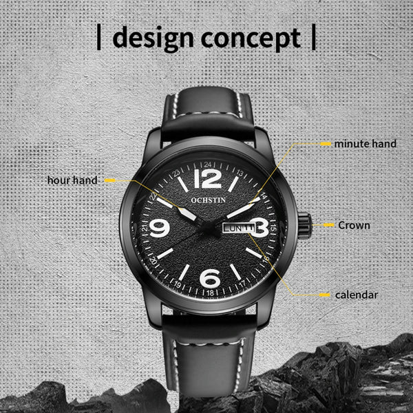Ochstin 6047B Business Style Quartz Men Leather Watch(Coffee+Coffee)