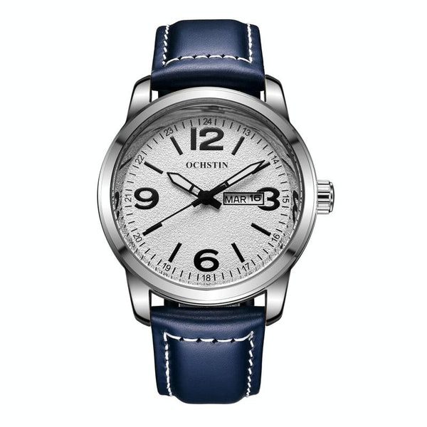 Ochstin 6047B Business Style Quartz Men Leather Watch(Silver+Blue)