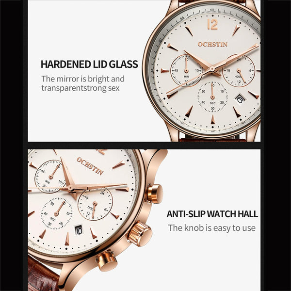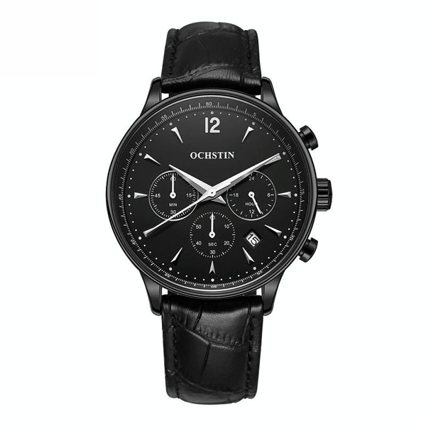 Ochstin 6050A Multifunctional Quartz Men Leather Watch(Black)