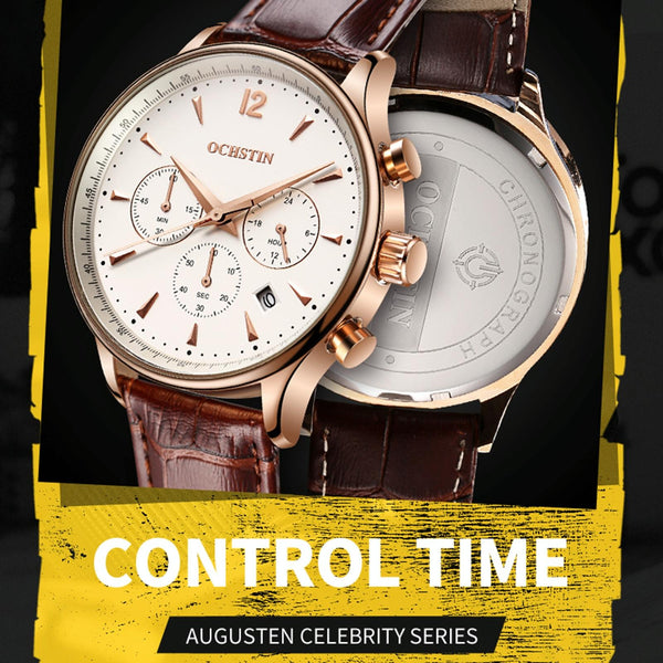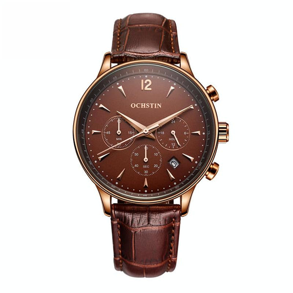 Ochstin 6050A Multifunctional Quartz Men Leather Watch(Coffee+Coffee)