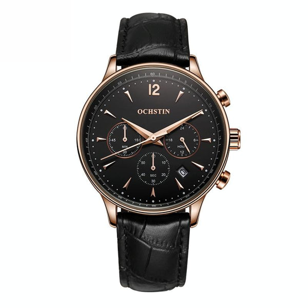 Ochstin 6050A Multifunctional Quartz Men Leather Watch(Rose Gold+Black)