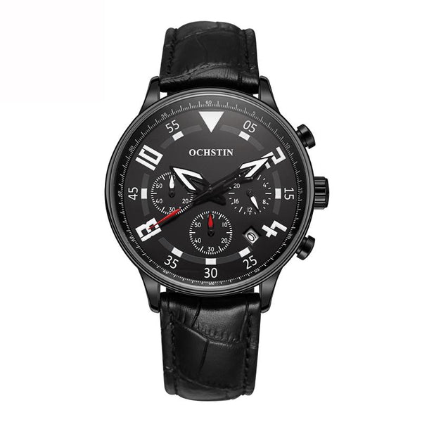 Ochstin 6050B Multifunctional Quartz Men Leather Watch(Black+Black+Black)