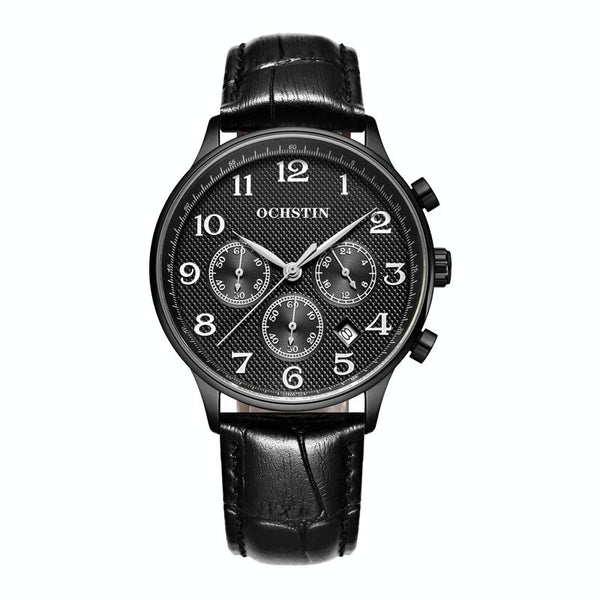 Ochstin 6050E Multifunctional Quartz Men Leather Watch(Black+Black)