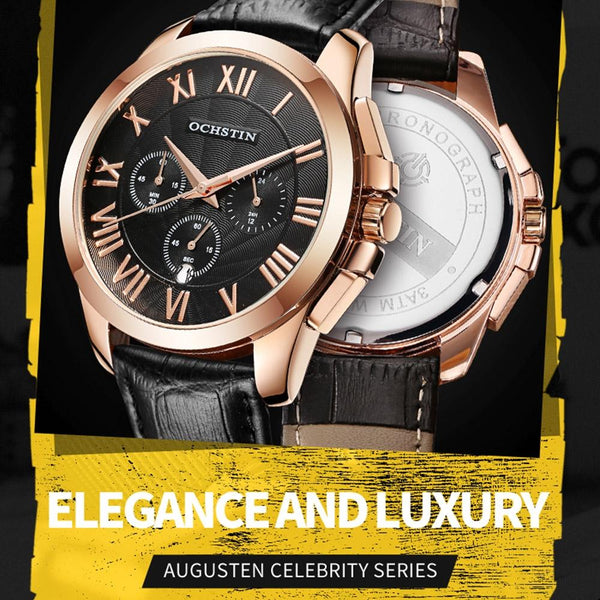 OCHSTIN 6059B Augustine Celebrity Series Multifunctional Quartz Waterproof Men Watch(Rose Gold+Black)