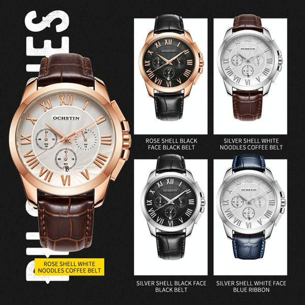 OCHSTIN 6059B Augustine Celebrity Series Multifunctional Quartz Waterproof Men Watch(Silver+Black)