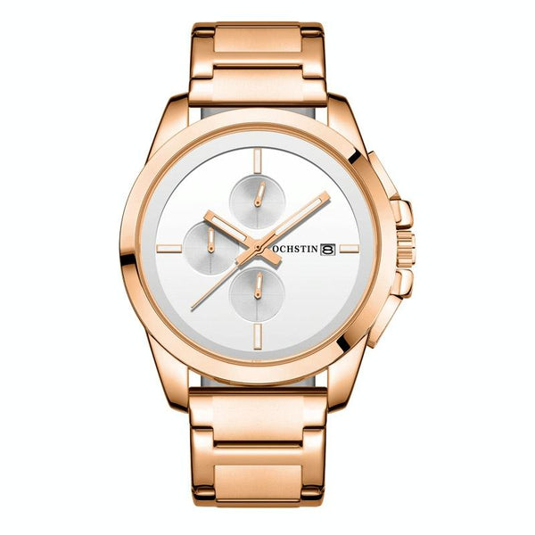 OCHSTIN 6059C Pilot Series Multifunctional Quartz Steel Band Men Watch(White+Rose Gold)