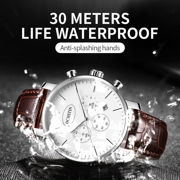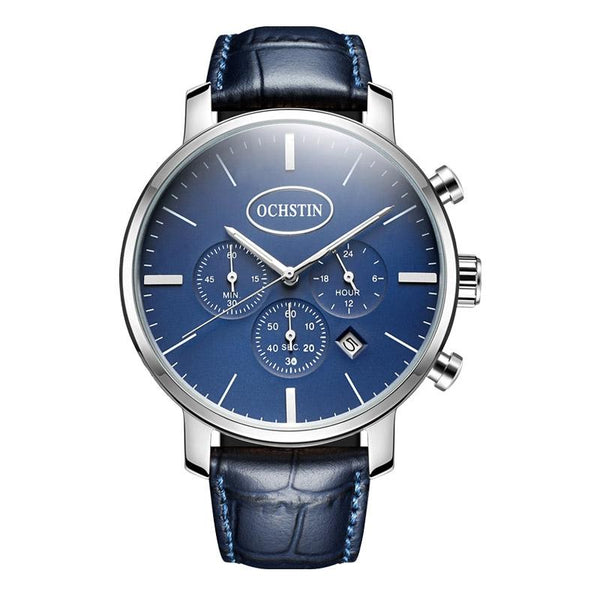 OCHSTIN 6066A Prominente Series Multifunctional Quartz Luminous Men Watch(Silver+Blue)