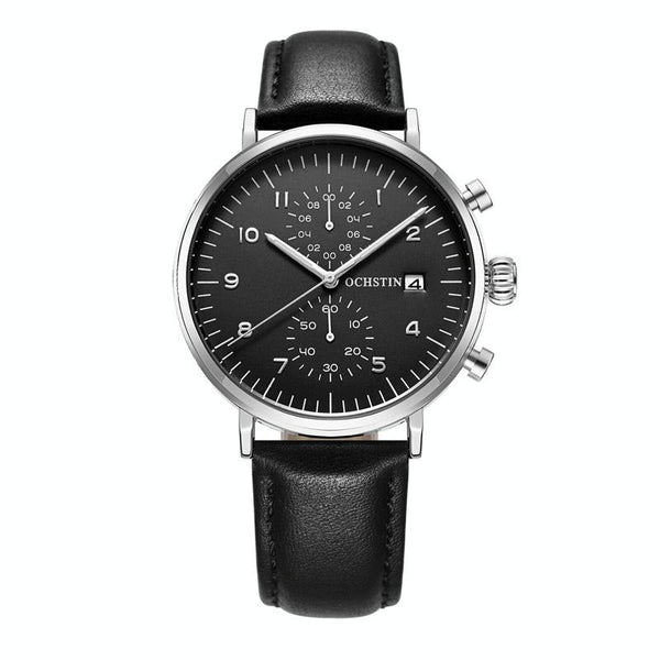 OCHSTIN 6076C Multifunctional Quartz Waterproof Men Leather Watch(Silver+Black)
