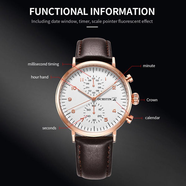 OCHSTIN 6076C Multifunctional Quartz Waterproof Men Leather Watch(Silver+Grey+Black)