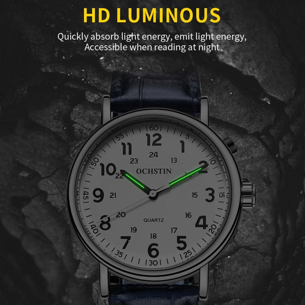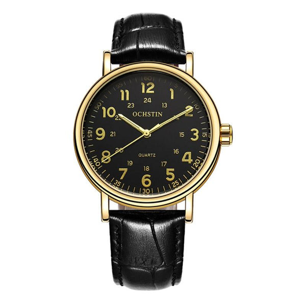 OCHSTIN 6081C Fashion Hollow Men Leather Quartz Watch(Gold+Black)