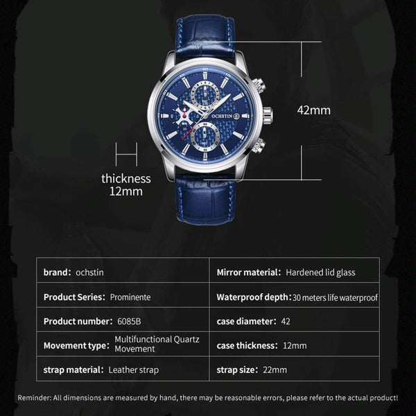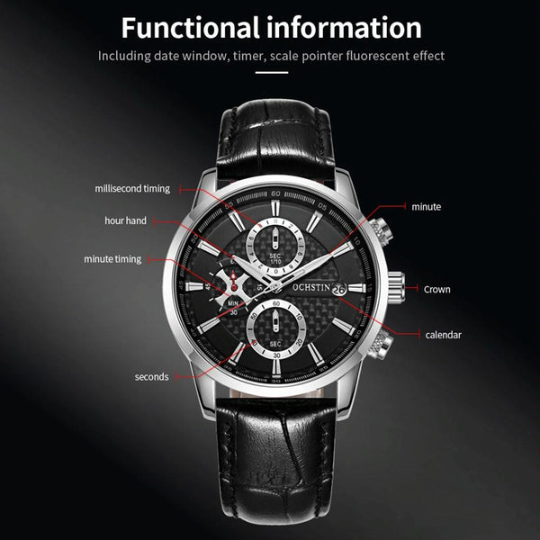 OCHSTIN 6085B Multifunctional Quartz Waterproof Men Leather Watch(Black)