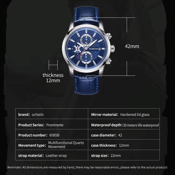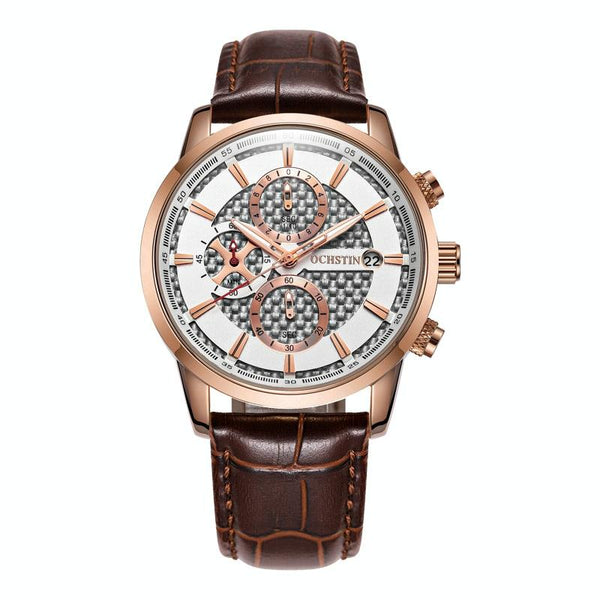 OCHSTIN 6085B Multifunctional Quartz Waterproof Men Leather Watch(Rose gold+Coffee)
