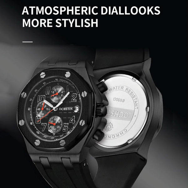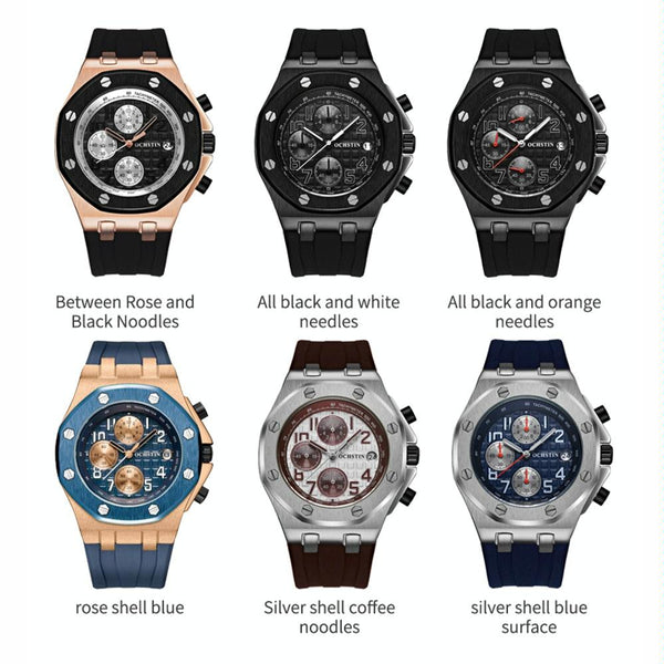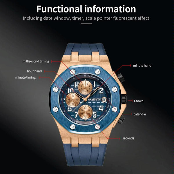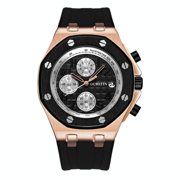 OCHSTIN 6100A Multifunctional Quartz Waterproof TPU Strap Men Watch(Rose Gold+Black)