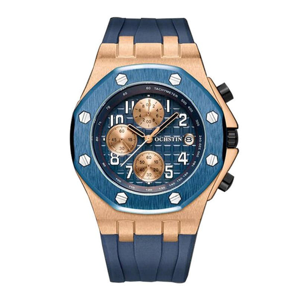 OCHSTIN 6100A Multifunctional Quartz Waterproof TPU Strap Men Watch(Rose Gold+Blue)