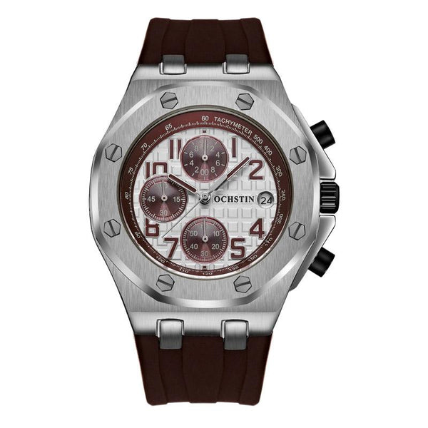 OCHSTIN 6100A Multifunctional Quartz Waterproof TPU Strap Men Watch(Silver+Coffee)