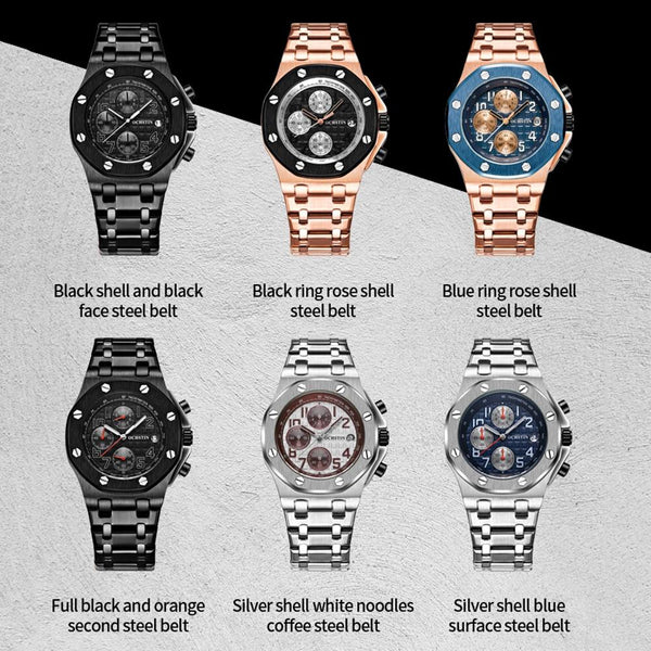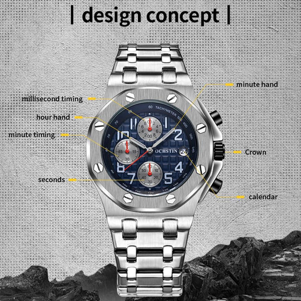 OCHSTIN 6100D Multifunctional Quartz Waterproof Luminous Steel Strap Men Watch(Silver 02)