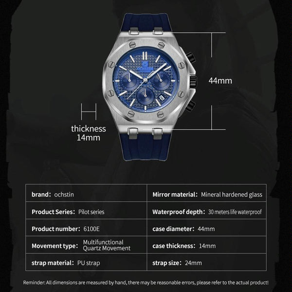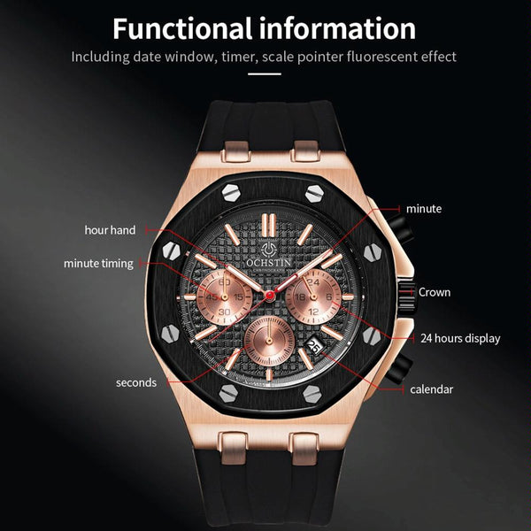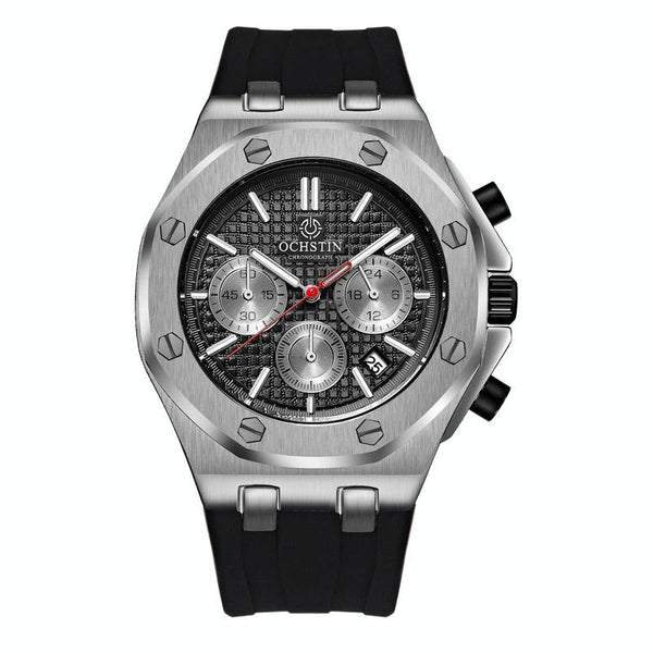 OCHSTIN 6100E Multifunctional Quartz Waterproof TPU Strap Men Watch(Silver+Black)