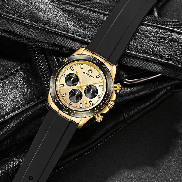 OCHSTIN 6103 Multi Function Quartz Watch Silicone Watch Band Sports Luminous Waterproof Watch(Rose GoldBlack)