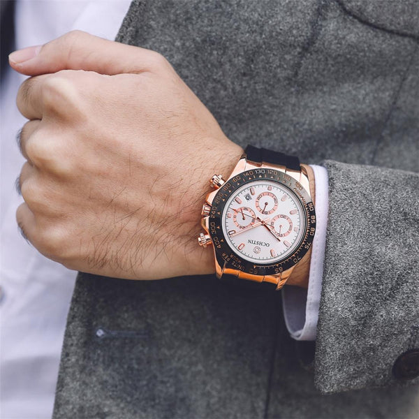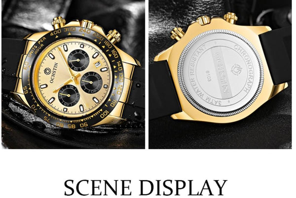 OCHSTIN 6103 Multi Function Quartz Watch Silicone Watch Band Sports Luminous Waterproof Watch(Rose Gold White)