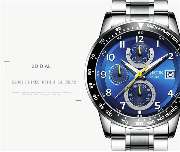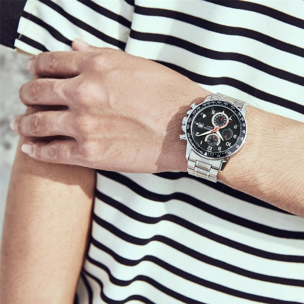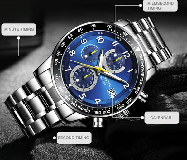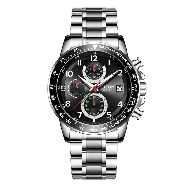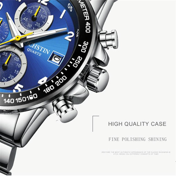 OCHSTIN 6112 Men MultiFunction Watch Fashion Sports Business Calendar Luminous Men Watch Quartz Watch Steel Watch(SilverBlack)