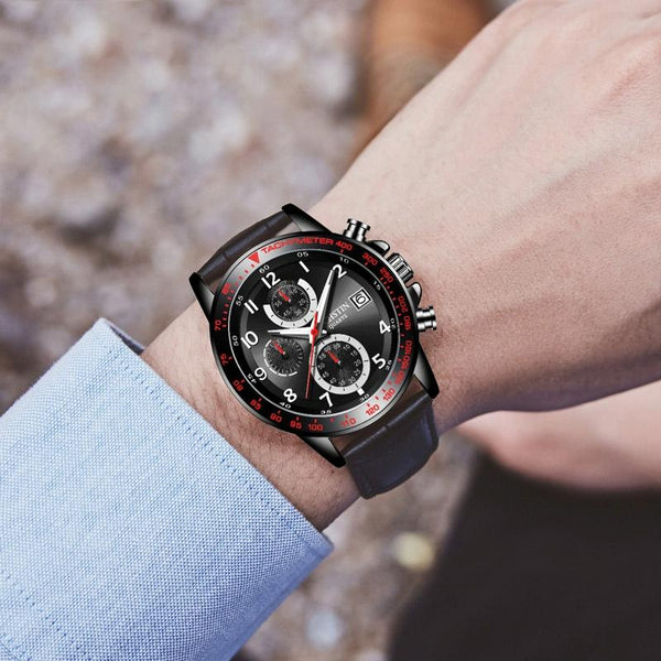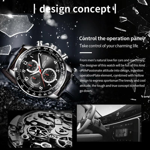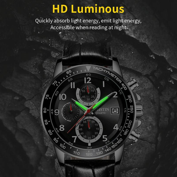 OCHSTIN 6112B Multifunctional Quartz Waterproof Luminous Men Leather Watch(Black 01)