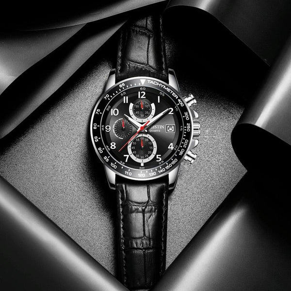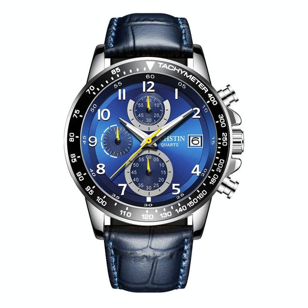 OCHSTIN 6112B Multifunctional Quartz Waterproof Luminous Men Leather Watch(Silver+Blue)