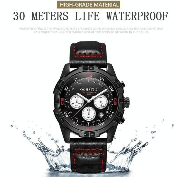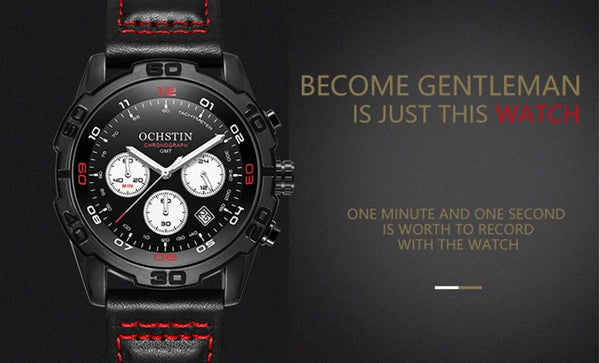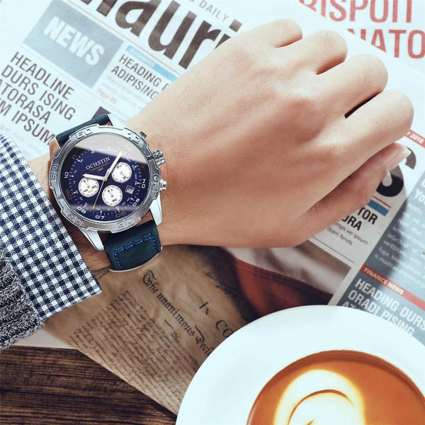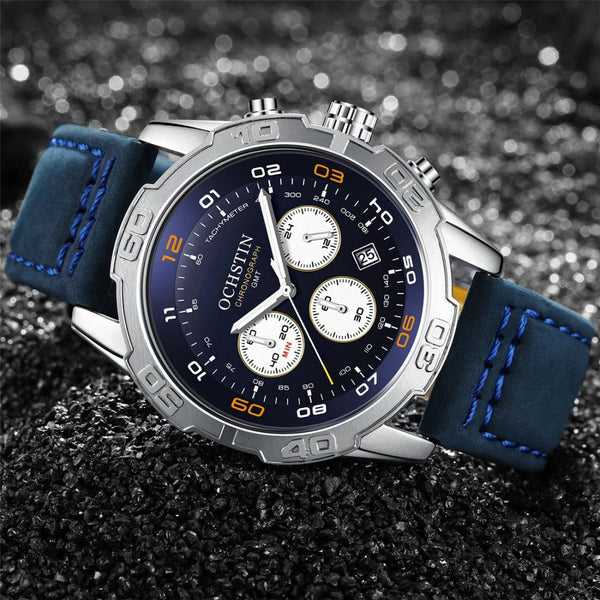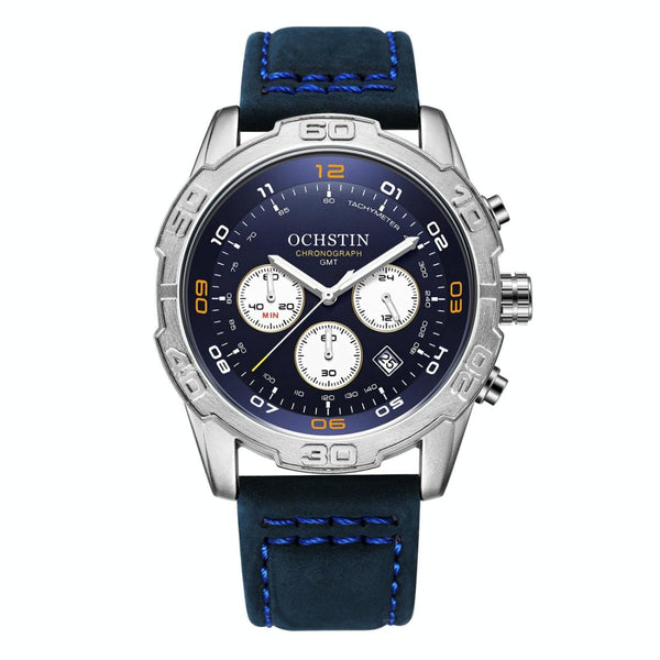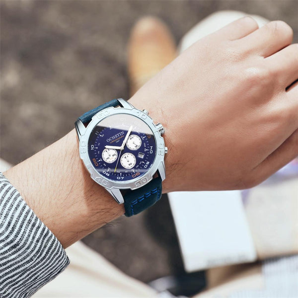 OCHSTIN 6116 MenLeather Calendar Multi Function Leisure MenWaterproof Watch(Blue)