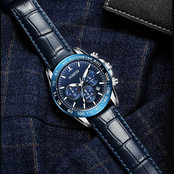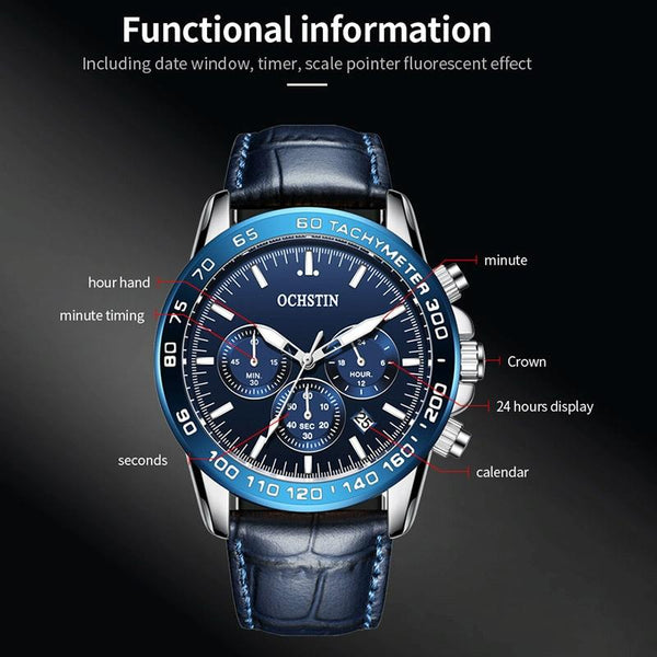OCHSTIN 6117C Multifunctional Quartz Waterproof Men Leather Watch(Blue)