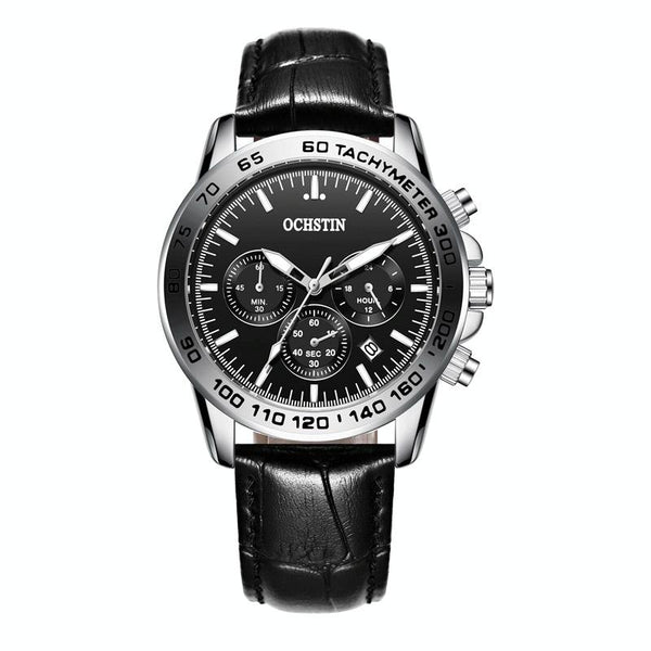 OCHSTIN 6117C Multifunctional Quartz Waterproof Men Leather Watch(Silver+Black)